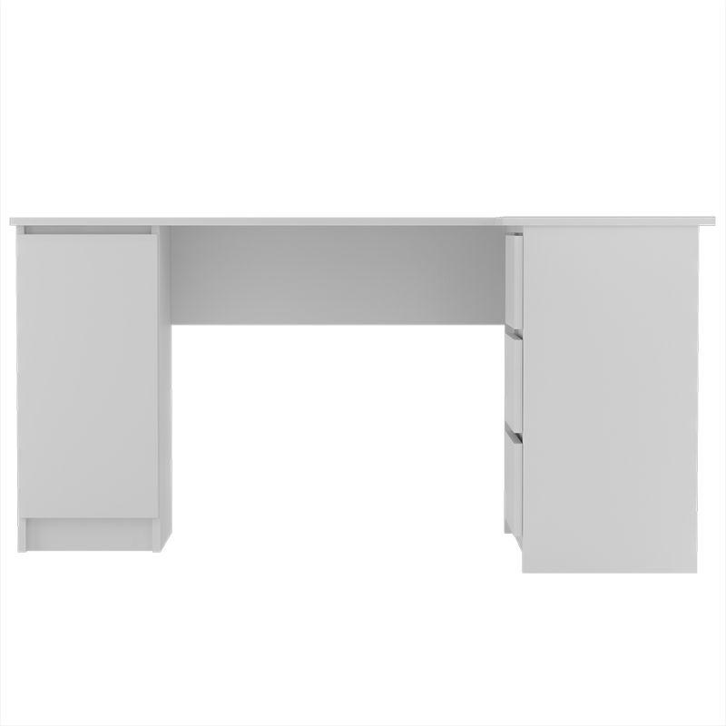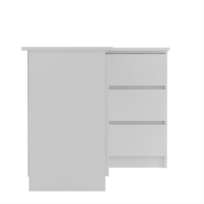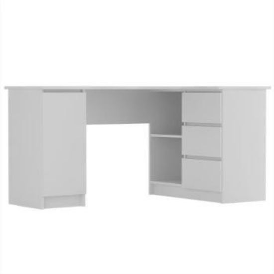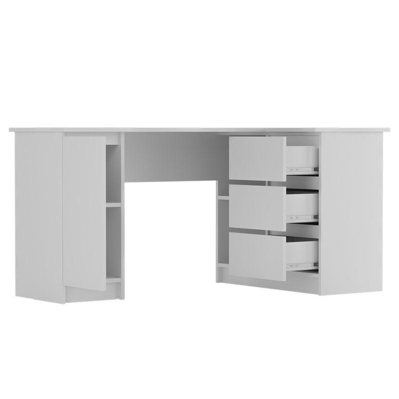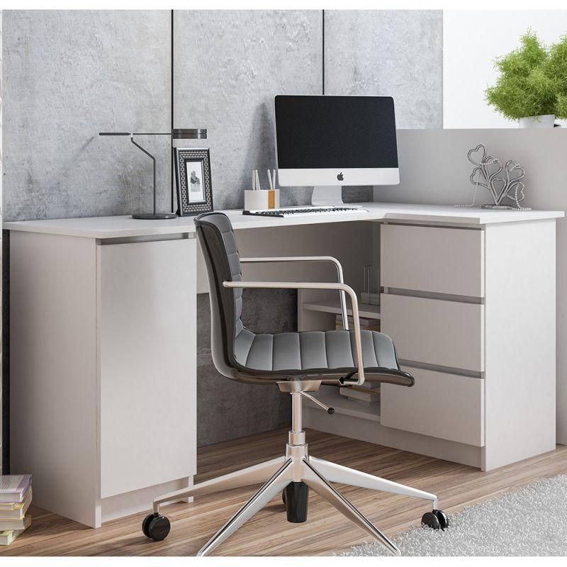 Biurko narożne Kristina 2 to nowoczesny i funkcjonalny mebel idealnie sprawdzający się w biurze czy pokoju młodzieżowym. Biurko posiada dwa segmenty składające się z szafki oraz trzech pojemnych szuflad, idealnych do przechowywania dokumentów. Segmenty można mocować zamiennie. Biurko narożne zapewnia wysoki komfort pracy ze względu na bardzo duży obszar roboczy na blacie.