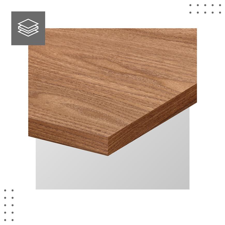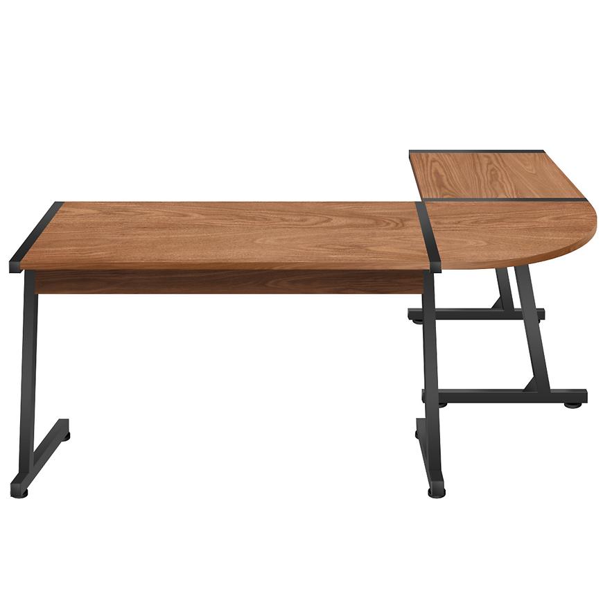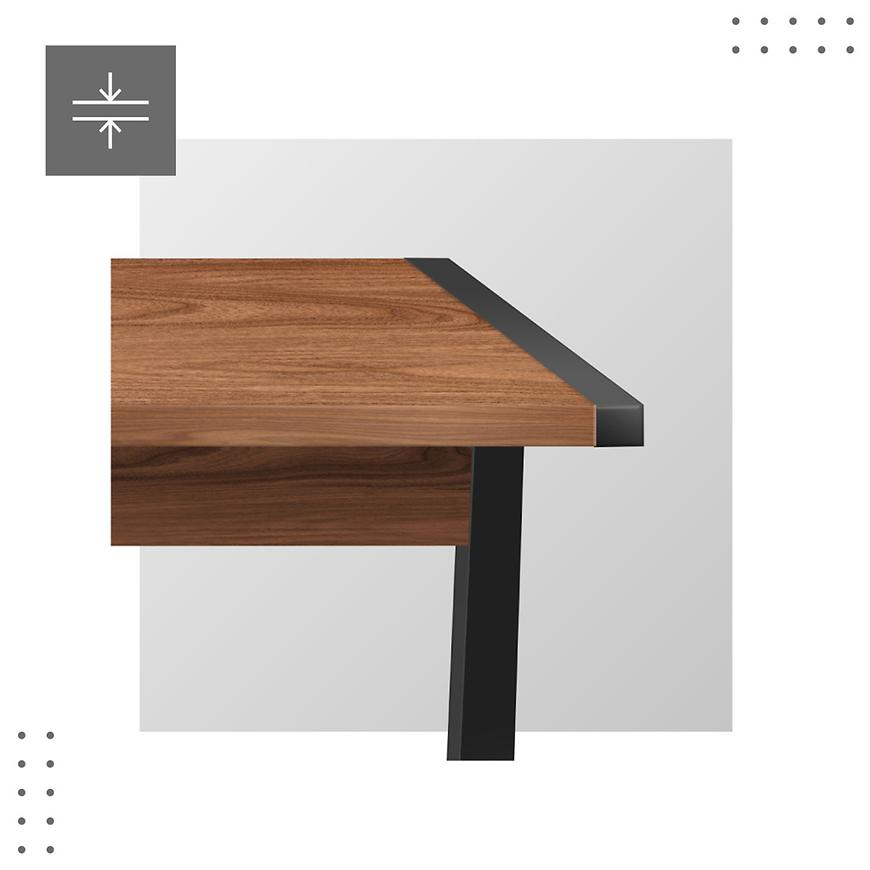 Blat biurka został wykonany z wytrzymałej płyty, a jego wykończenie wzorem drewna orzechowego nadaje mu elegancji i naturalnego uroku. Dzięki temu biurko nie tylko pełni funkcję praktyczną, ale również stanowi estetyczny element dekoracyjny.