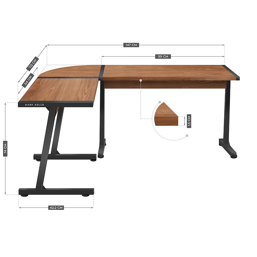 Biurko narożne Markadler Leader 5.5 orzech/czarny to nie tylko praktyczne rozwiązanie, ale również designerski element, który wpisuje się w nowoczesne trendy. Dzięki wytrzymałej konstrukcji, regulowanym stopkom i łatwemu montażowi, to biurko zapewni funkcjonalność, wygodę i estetykę w Twoim biurze lub gabinecie.