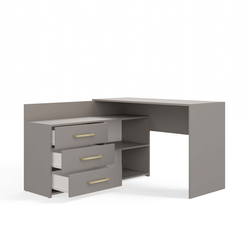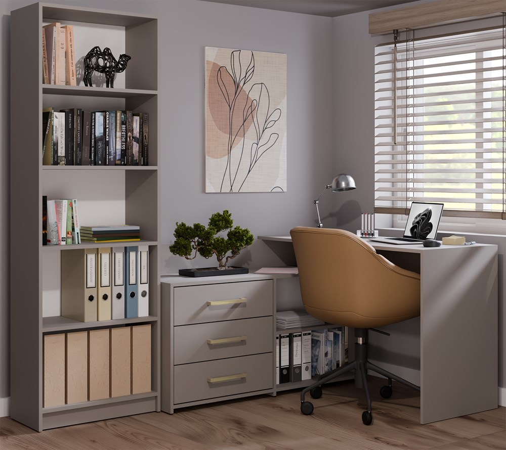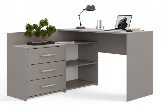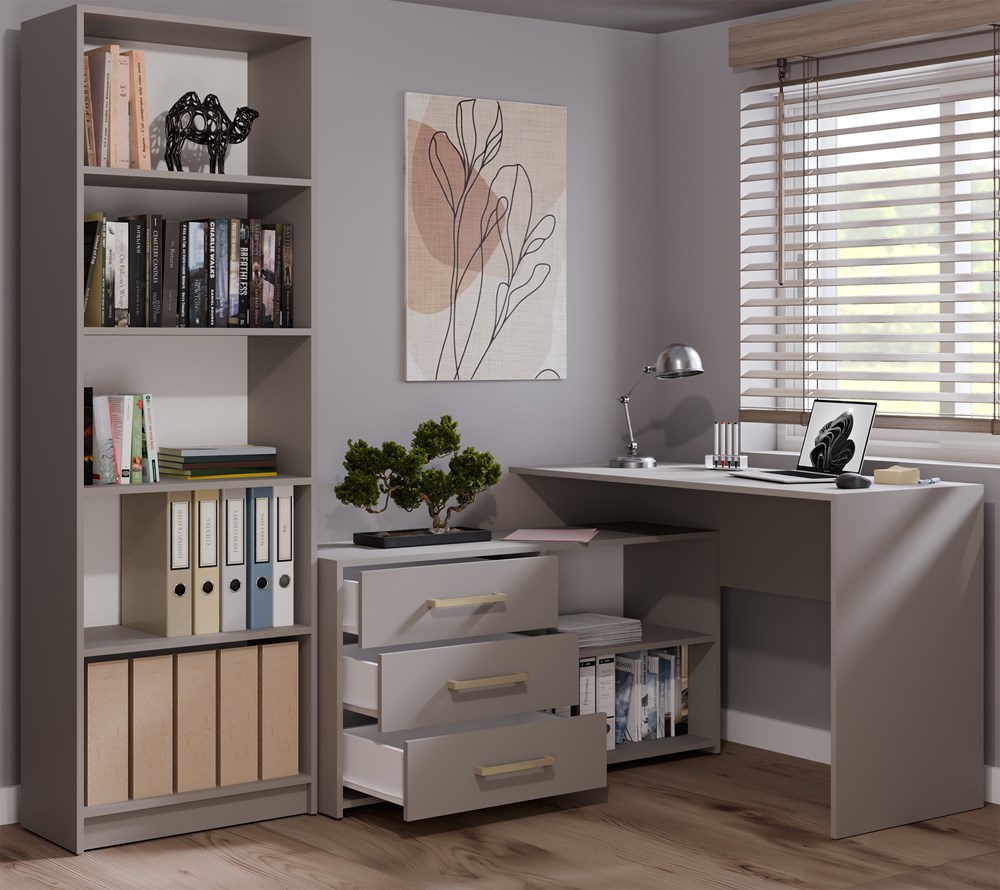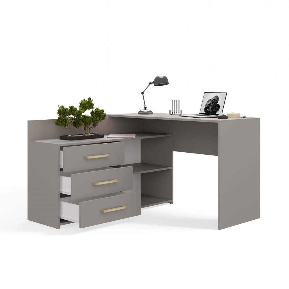 Duże narożne biurko Dana w kształcie litery L to idealne rozwiązanie do biura lub domowego gabinetu, zapewniające wygodne miejsce do pracy czy nauki. Dzięki swojej konstrukcji efektywnie wykorzystuje wolne przestrzenie w pomieszczeniu, oferując jednocześnie obszerną powierzchnię roboczą.