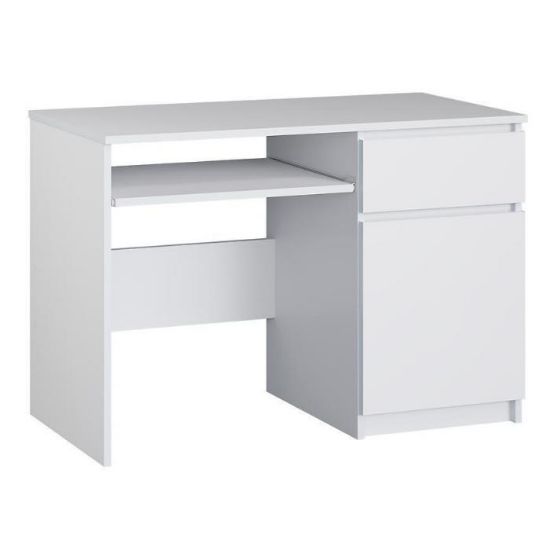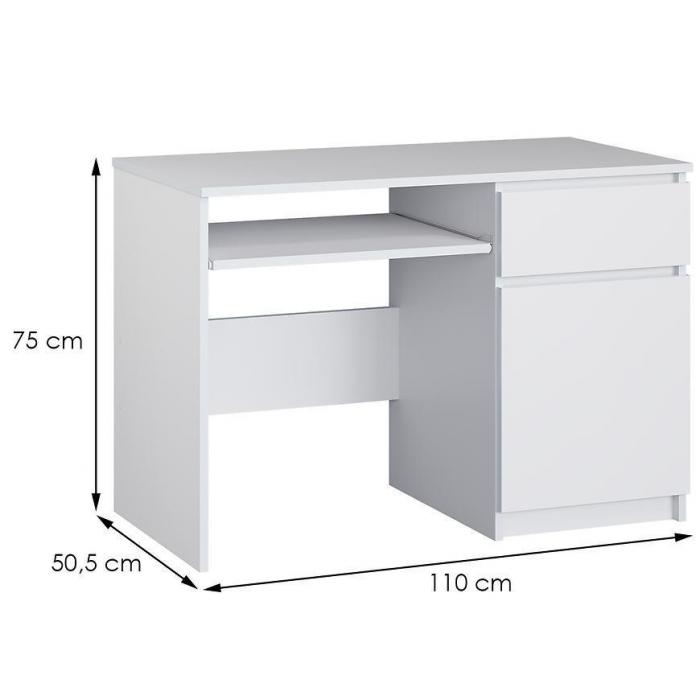 Meble zostały wykonane z płyty wiórowej laminowanej w kolorze białym. Dzięki swojej klasycznej kolorystyce, będą pasowały do każdego wnętrza. Nowoczesny styl mebli wpadnie do gustu każdemu, kto poszukuje eleganckiego, klasycznego, a zarazem nowoczesnego umeblowania. Orientacja biurka: prawostronna.