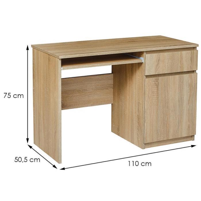 Meble zostały wykonane z płyty wiórowej laminowanej w kolorze dąb sonoma. Dzięki swojej klasycznej kolorystyce, będą pasowały do każdego wnętrza. Nowoczesny styl mebli wpadnie do gustu każdemu, kto poszukuje eleganckiego, klasycznego, a zarazem nowoczesnego umeblowania. Orientacja biurka: prawostronna.