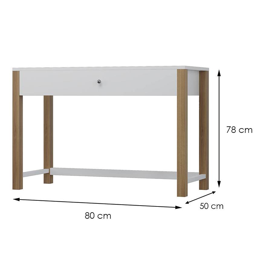 Meble zostały wykonane z drewna w kolorze białym mat. Dzięki swojej klasycznej kolorystyce, będą pasowały do każdego wnętrza. Nowoczesny styl mebli wpadnie do gustu każdemu, kto poszukuje eleganckiego, klasycznego umeblowania. Orientacja biurka: uniwersalna.