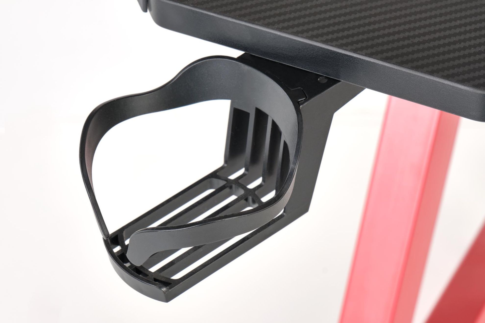 Biurko posiada także uchwyt na napój, który pozwala na przechowywanie ulubionego napoju w zasięgu ręki, a także uchwyt na akcesoria, który pomaga w utrzymaniu biurka schludnym i uporządkowanym. To funkcje, które znacznie ułatwiają organizację przestrzeni pracy.