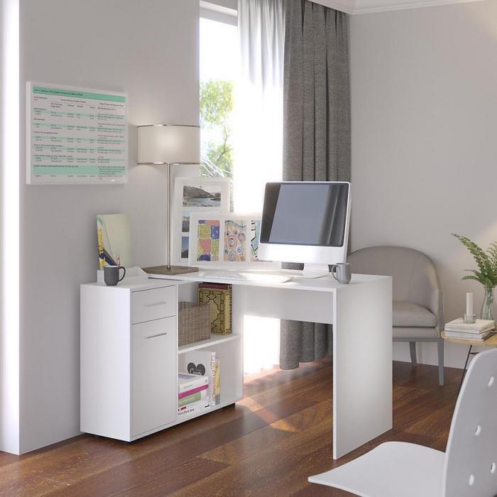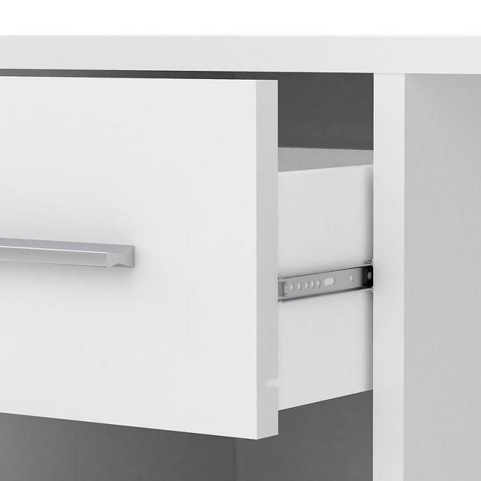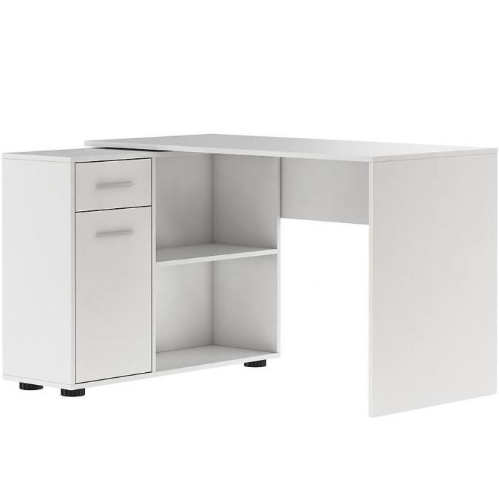 Biurko w nowoczesnym stylu, które wpasuje się w klasyczne i nowoczesne wnętrza. Wykonane z płyty wiórowej laminowanej. Posiada miejsce do przechowywanie niezbędnych produktów biurowych lub szkolnych.