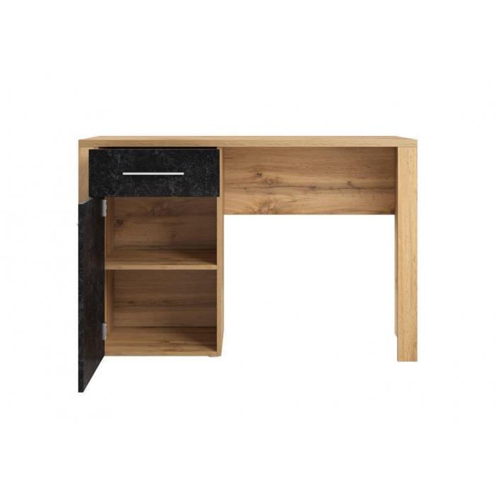 Biurko Smart 5 dostępne w kolorze dąb wotan/ czarny beton. Biurko posiada szufladę po lewej stronie oraz jednodrzwiowa szafkę z jedna półką. Produkt do samodzielnego montażu.