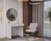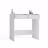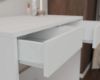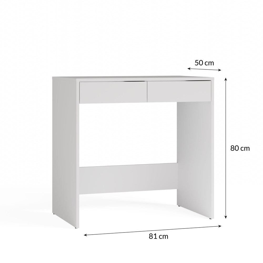 Wyposażone w dwie pojemne szuflady na prowadnicach rolkowych, gwarantuje płynne i ciche wysuwanie z blokadą, co zwiększa komfort i bezpieczeństwo użytkowania. Bezuchwytowe fronty nadają biurku minimalistyczny wygląd, wpisujący się w nowoczesne aranżacje wnętrz.