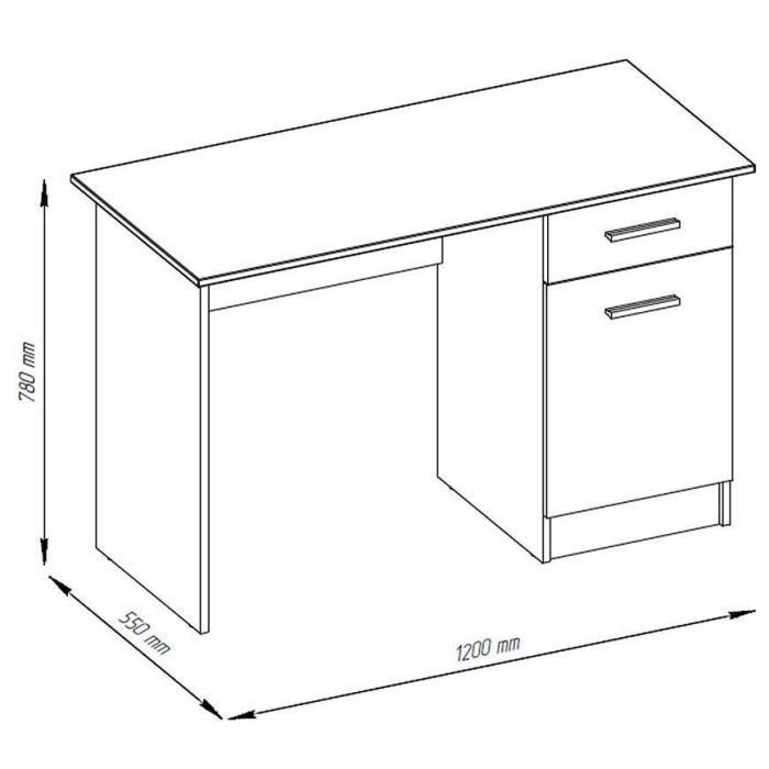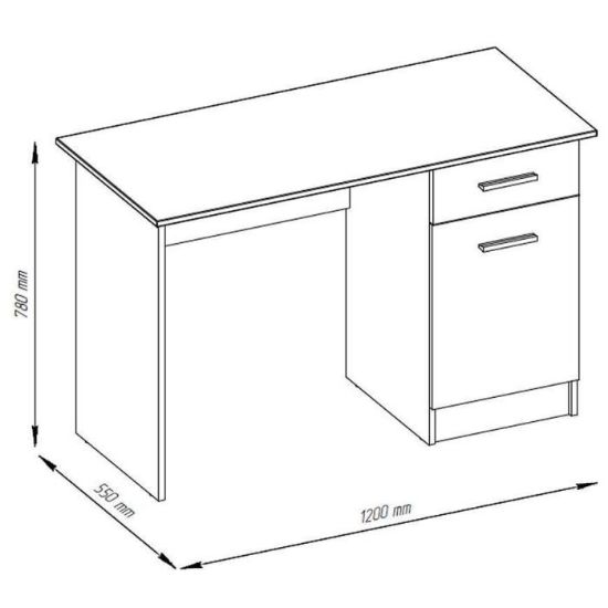 Biurko Stil 2 oferuje 1 szufladę, 1 szafkę oraz 2 półki, co umożliwia łatwe przechowywanie dokumentów, przyborów biurowych oraz drobnych akcesoriów. Szuflada zapewnia szybki dostęp do najczęściej używanych przedmiotów, szafka kryje większe akcesoria lub segregatory, a półki pozwalają na utrzymanie porządku na blacie i w zasięgu ręki.