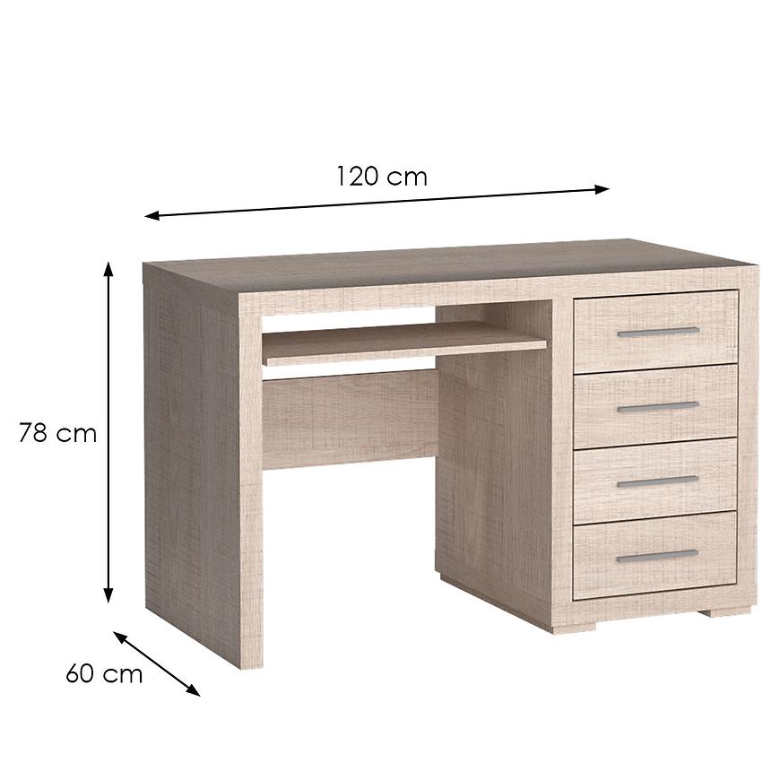 Nowoczesne i funkcjonalne biurko Vegas wykonane w całości z płyty wiórowej laminowanej w kolorze santana. Posiada cztery pojemne szuflady, które dodatkowo stanowią miejsce do przechowywania. Biurko jest stabilne i wytrzymałe, a dzięki swojemu wykończeniu posłuży przez wiele lat.