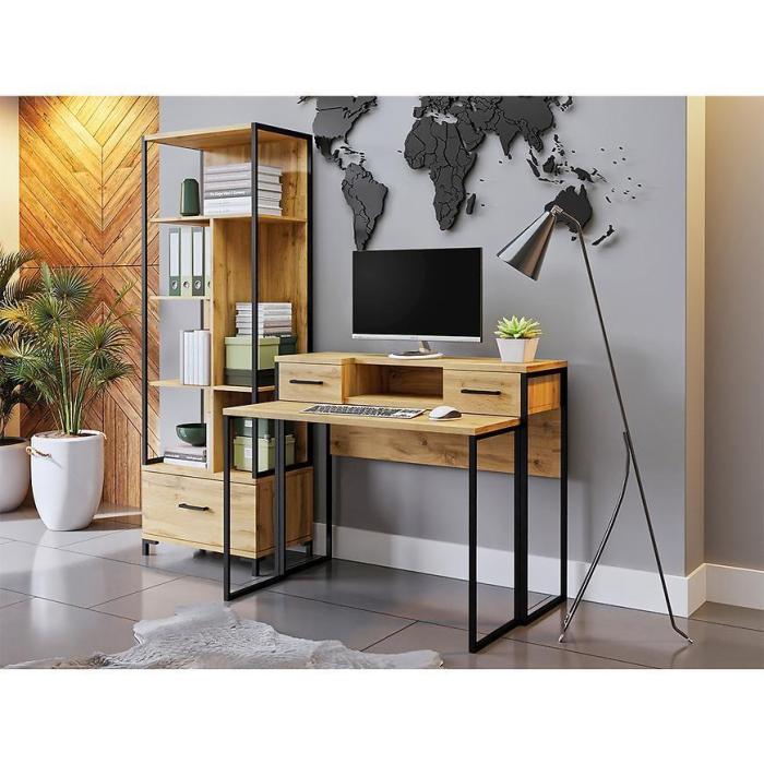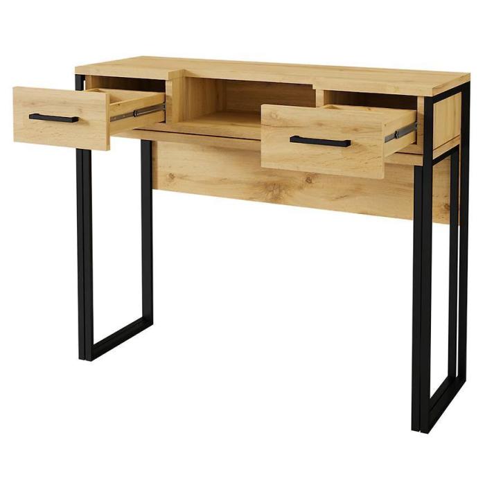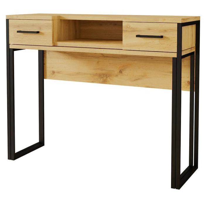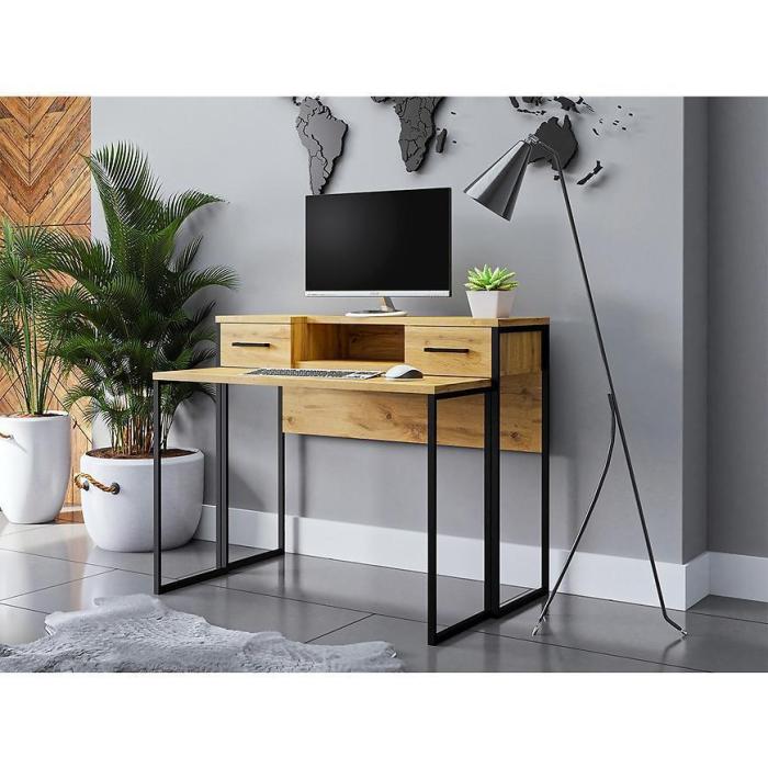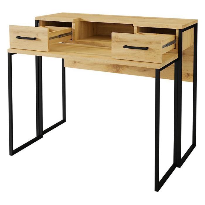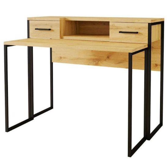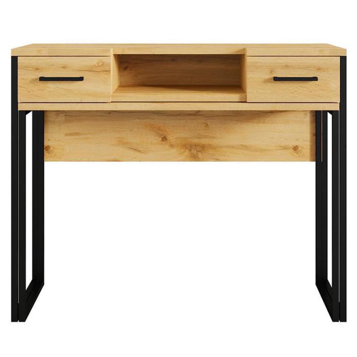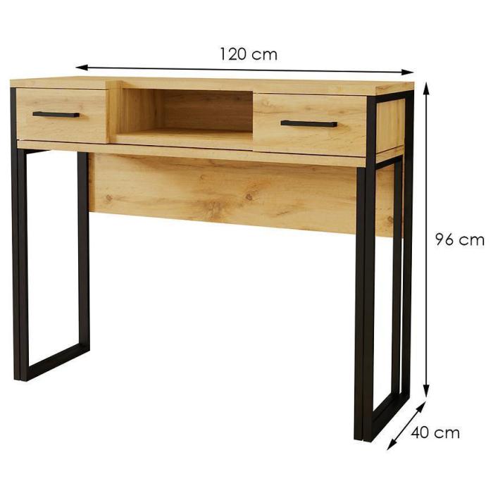 Biurko/toaletka Jenna to praktyczny mebel. Wykonane zostało z płyty wiórowej laminowanej w kolorze dąb wotan. Dodatkowo można wysunąć lub schować blat, gdy potrzebujemy miejsca. Dzięki starannemu wykończeniu posłuży przez wiele lat. Idealnie wpasuje się w nowoczesne wnętrza. Dzięki swojemu wybarwieniu będzie pasować do większości aranżacji. Orientacja: uniwersalne.
