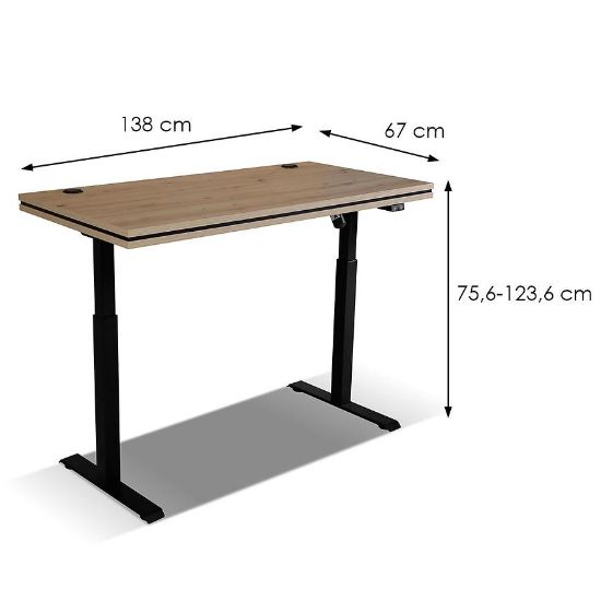 Biurko z elektryczną regulacją wysokości Malta w kolorze artisan to wyrafinowane rozwiązanie dla osób poszukujących nowoczesnego i funkcjonalnego miejsca do pracy. Zaprojektowane z myślą o komforcie użytkowania, pozwala dostosować wysokość od 75,6 do 123,6 cm, co umożliwia personalizację zgodnie z indywidualnymi preferencjami oraz ergonomią pracy.