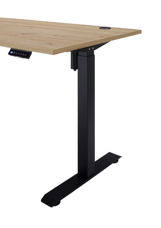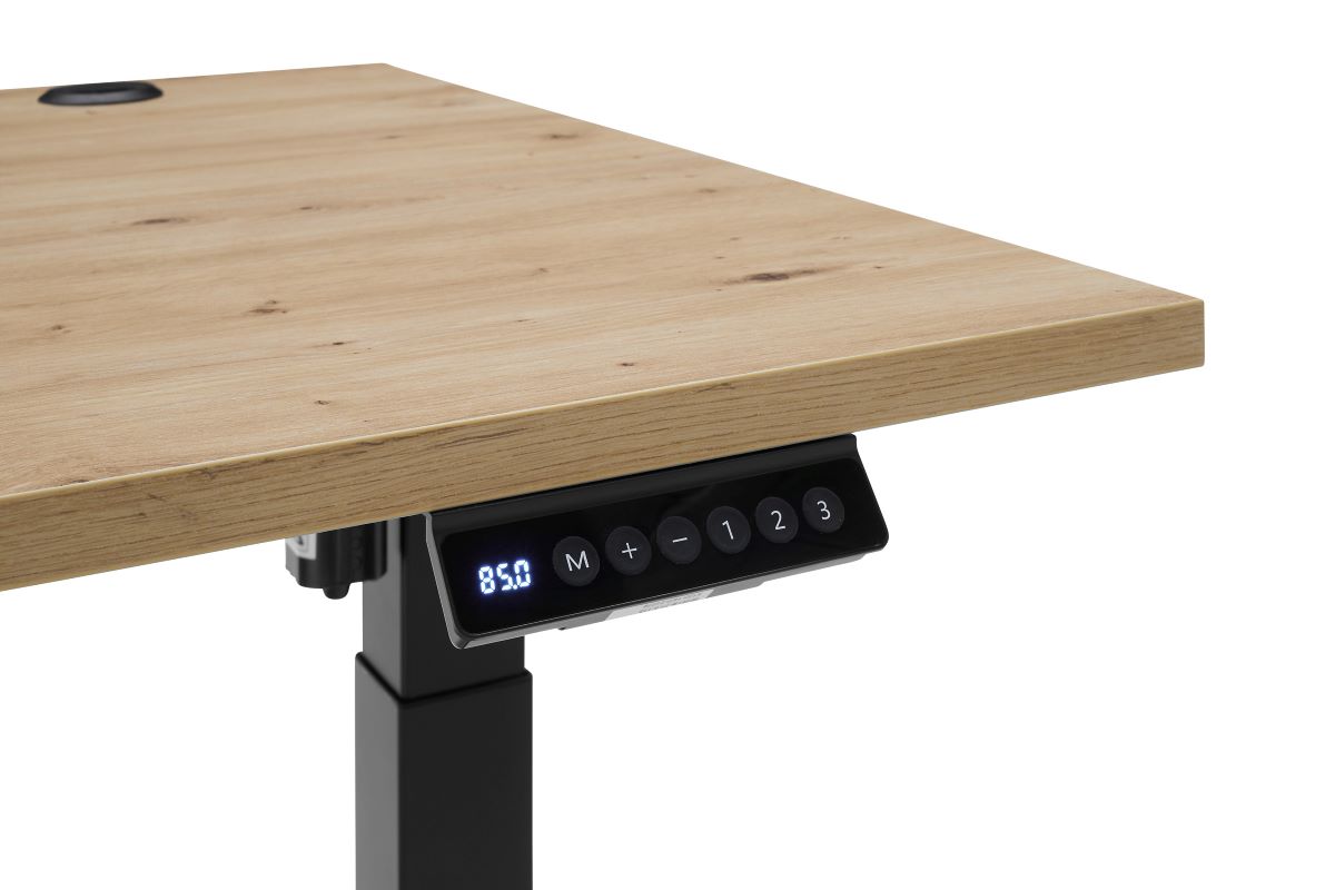 Jedną z głównych cech tego biurka jest regulacja wysokości, która umożliwia dostosowanie go do indywidualnych potrzeb użytkownika. Dzięki elektrycznemu systemowi regulacji wysokości stelaża, zmiana pozycji pracy odbywa się płynnie i bez wysiłku. Wysokość można łatwo dostosować za pomocą trzech przycisków pamięci, co pozwala na szybkie przejście między ulubionymi ustawieniami wysokości.