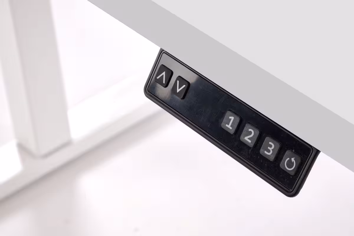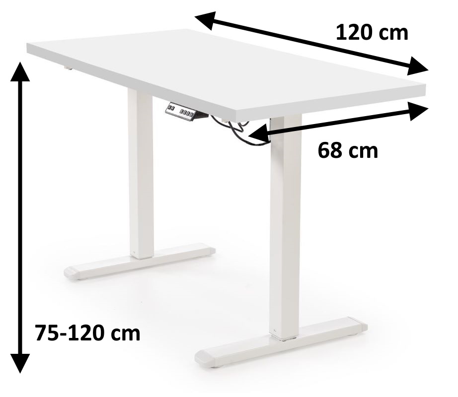 Biurko z funkcją elektrycznej regulacji wysokości blatu w zakresie od 75 do 120 cm. Dzięki panelowi sterującemu, podłączanemu do gniazdka, możliwa jest szybka i płynna zmiana pozycji – z siedzącej na stojącą. Biurko zapamiętuje trzy wybrane wysokości, co pozwala jednym kliknięciem ustawić idealną pozycję – wygodnie, bez konieczności każdorazowego dostosowywania. Panel sterowania dodatkowo wyposażony w blokadę rodzicielską.