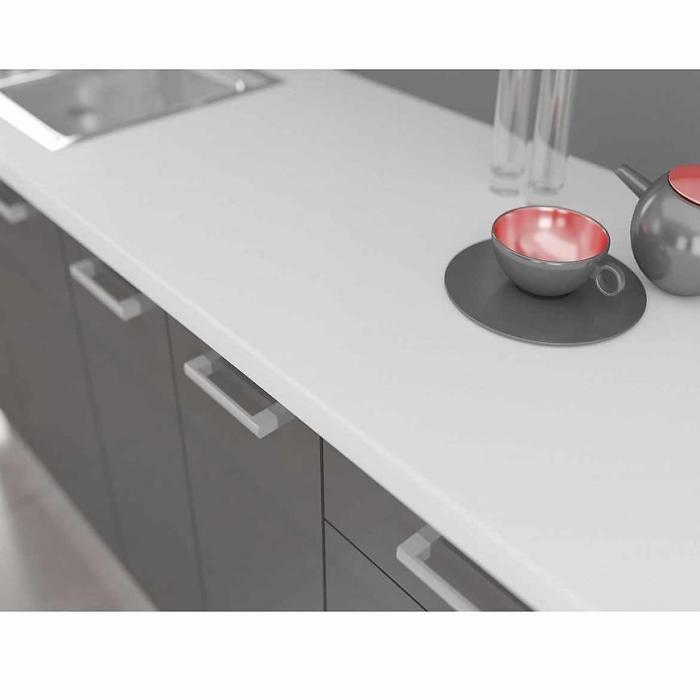 Blat kuchenny biały doskonale współgra z meblami w różnych kolorach i stylach. Dzięki neutralnemu białemu wybarwieniu wprowadza jasność i elegancję, tworząc spójną i nowoczesną aranżację kuchni.