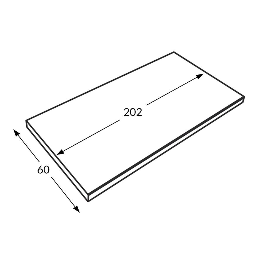 Z grubością wynoszącą 3,8 cm blat prezentuje się solidnie i elegancko, dodając kuchni wyrafinowanego charakteru. Jego szerokość o wartości 202 cm i głębokość 60 cm to praktyczne wymiary, które zapewniają odpowiednią przestrzeń roboczą podczas codziennych czynności kuchennych.