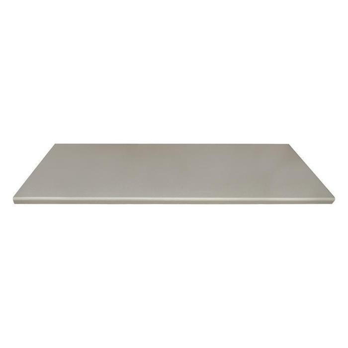 Blat został pokryty laminatem CPL/HPL spód pokryty jest papierem przeciwprężnym, który zapobiega odkształcaniu się blatu i tworzy barierę, zatrzymując wodę. Pełni również funkcję zabezpieczenia przed wilgocią. Wybarwienie jest szare.
