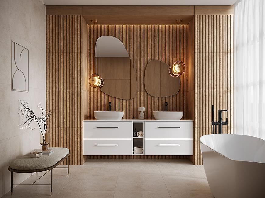 Płytka jest rektyfikowana — co oznacza, że fugę można prowadzić w bardzo wąskim wymiarze. Przy drewnopodobnej strukturze daje to efekt wizualnie spójny, który można określić jako „ciągła powierzchnia”. To aktualnie kierunek najczęściej wybierany przez osoby, które projektują wnętrza nowoczesne — w których krawędź nie ma stanowić dekoracji, a płaszczyzna ma mówić.