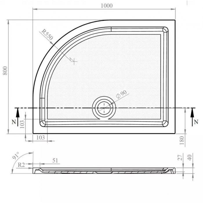 Brodzik asymetryczny Tek 100x80x4 lewy