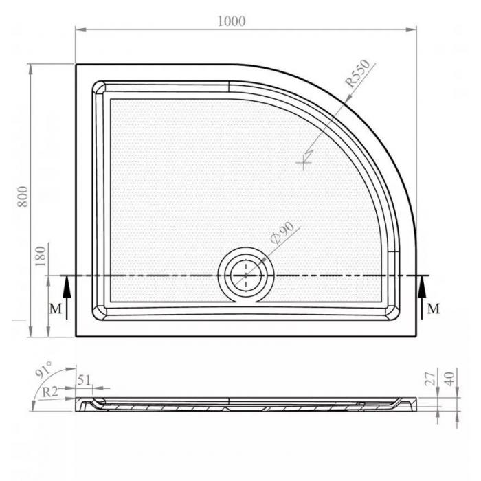 Brodzik asymetryczny Tek 100x80x4 prawy
