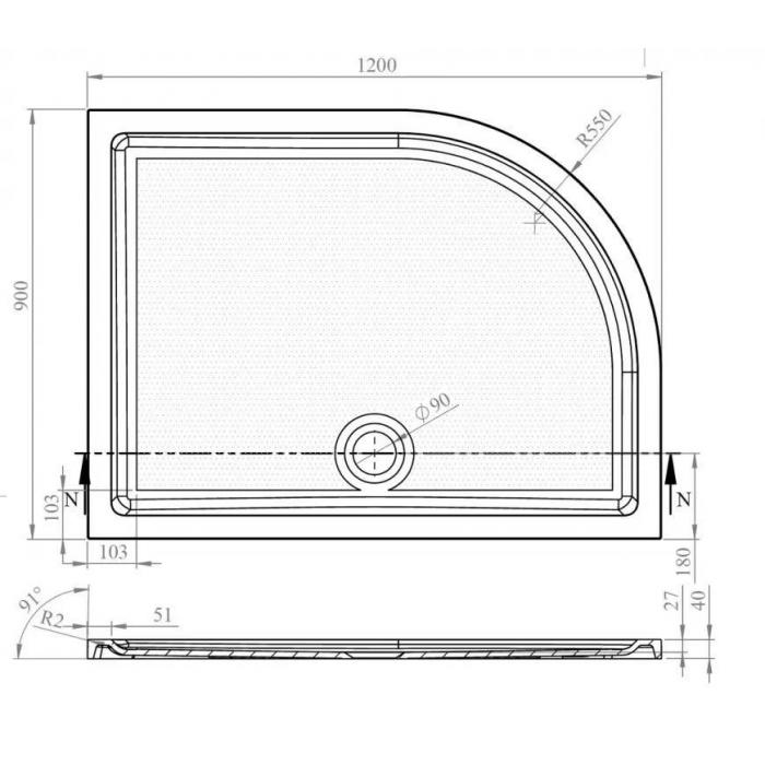 Brodzik asymetryczny Tek 120x90x4 prawy
