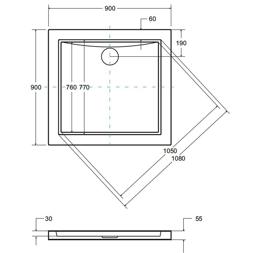 Brodzik kwadratowy Aquarius 90x90 cm w czarnym wykończeniu stone effect to elegancki i nowoczesny element wyposażenia łazienki, łączący estetykę z funkcjonalnością. Wykonany z wytrzymałego akrylu sanitarnego, jest odporny na uszkodzenia i łatwy w utrzymaniu czystości. Niska wysokość 5,5 cm i głębokość 3 cm nadają mu minimalistyczny charakter, a większy rozmiar 90x90 cm zapewnia komfort podczas kąpieli pod prysznicem. Waży 12,6 kg, co gwarantuje stabilność montażu. Syfon nie jest dołączony, umożliwiając dobór modelu dopasowanego do indywidualnych potrzeb.