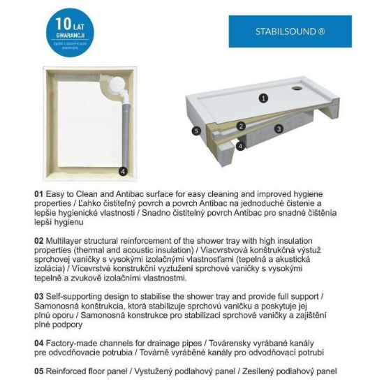 brodzik akrylowy z podbudową stabilizującą Stabilsound®