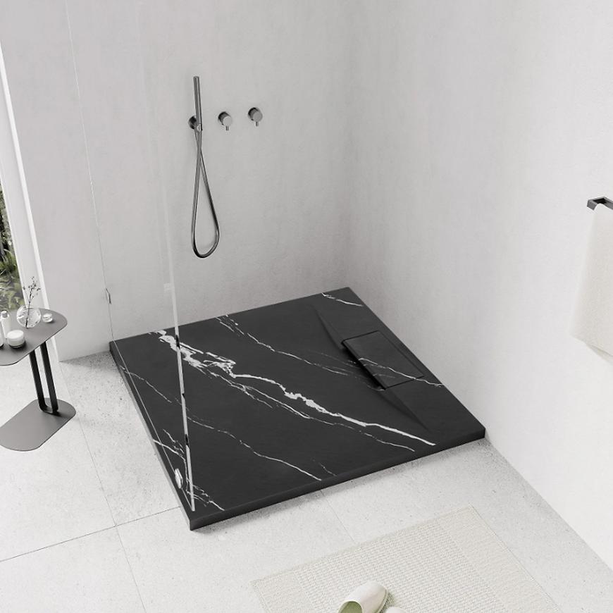Brodzik kwadratowy Rea Magnum Carrara Black 90x90x2,5 cm to elegancki i nowoczesny model wykonany z trwałego kompozytu, łączący odporność na uszkodzenia z łatwością utrzymania w czystości. Stylowe czarne wykończenie z marmurowym wzorem Carrara nadaje łazience luksusowy charakter. Kwadratowy kształt idealnie pasuje do większości kabin prysznicowych, a syfon w zestawie umożliwia szybki i wygodny montaż, zapewniając pełną funkcjonalność brodzika w każdej łazience.