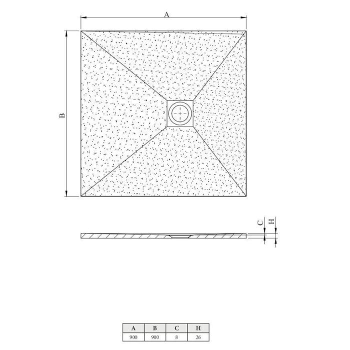 - Brodzik kwadratowy Opal 90/90/2.6 czarny