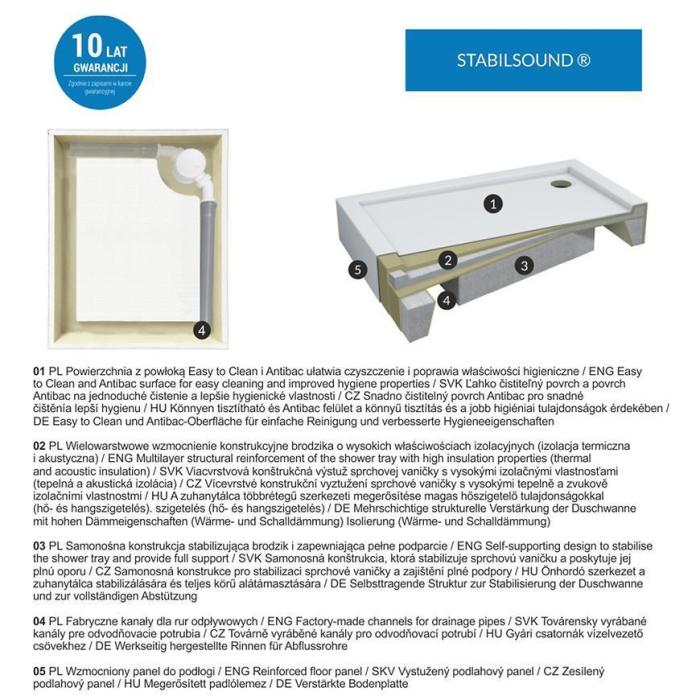 Brodzik pieciokątny ESPERA PLUS AQM4698 o wymiarach 90x90 i wysokości 12 cm wykonany z akrylu z podbudową stabilizującą Stabilsound®.