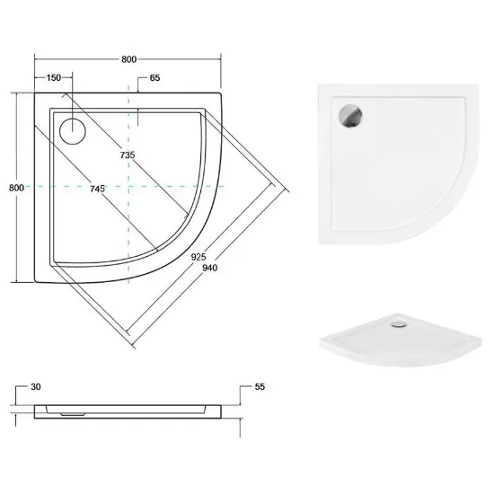 Brodzik półokrągły Aron Slimline 80/80/3/5,5