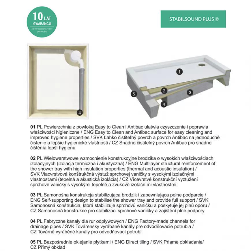 brodzik akrylowy z podbudową stabilizującą Stabilsound®