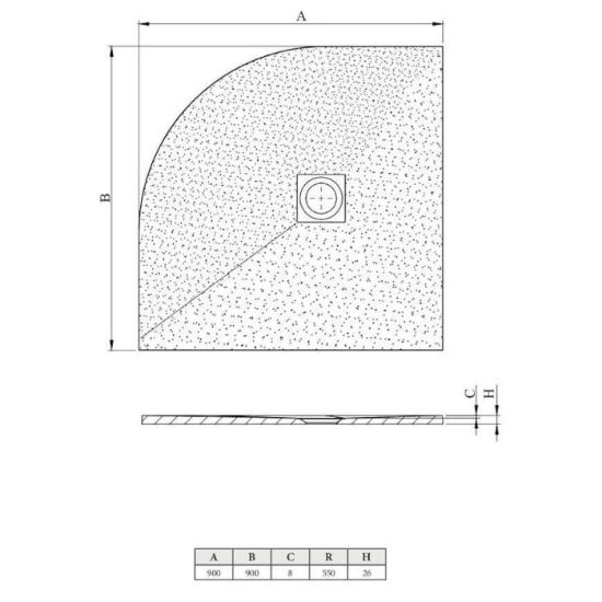 Brodzik wykonany z konglomeratu o szerokości 90 cm. Proponowany Syfon brodzikowy zero bez pokrywy