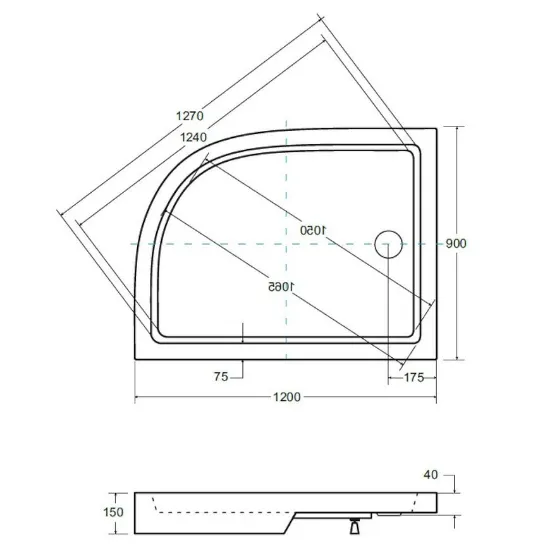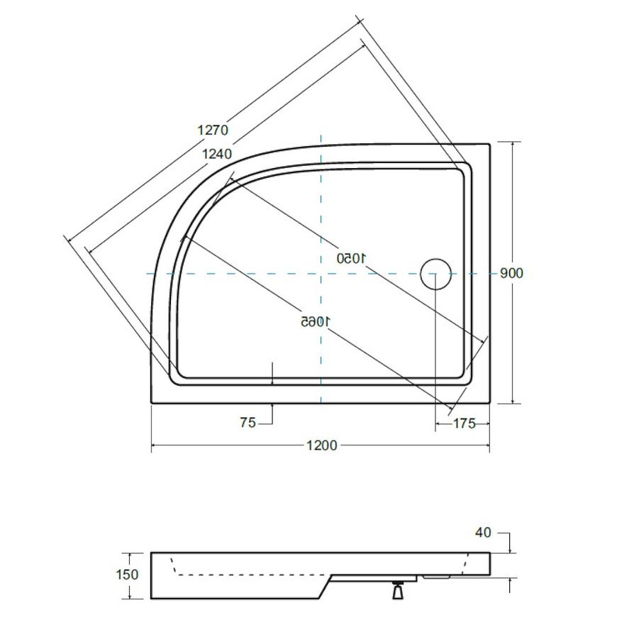 Brodzik półokrągły Saturn 120/90/4/16 lewy