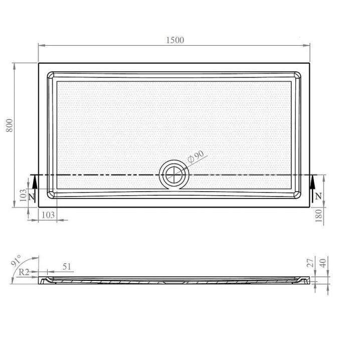 Brodzik prostokątny Tek 150x80x4