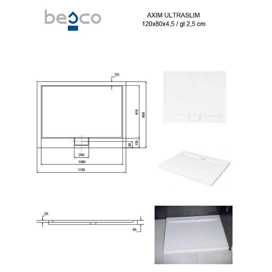 Brodzik prostokątny Axim Ultraslim 120×80 cm marki BESCO to eleganckie i praktyczne rozwiązanie do nowoczesnych łazienek. Wykonany z trwałego akrylu sanitarnego w klasycznym białym kolorze, wyróżnia się gładką powierzchnią, łatwością czyszczenia i odpornością na zarysowania. Ultracienka konstrukcja o wysokości 4,5 cm i głębokości 2,5 cm zapewnia komfortowe wchodzenie i wychodzenie, a solidna waga 16 kg gwarantuje stabilność. W komplecie znajduje się syfon, co ułatwia montaż i przyspiesza instalację. Idealny do kabin prostokątnych.