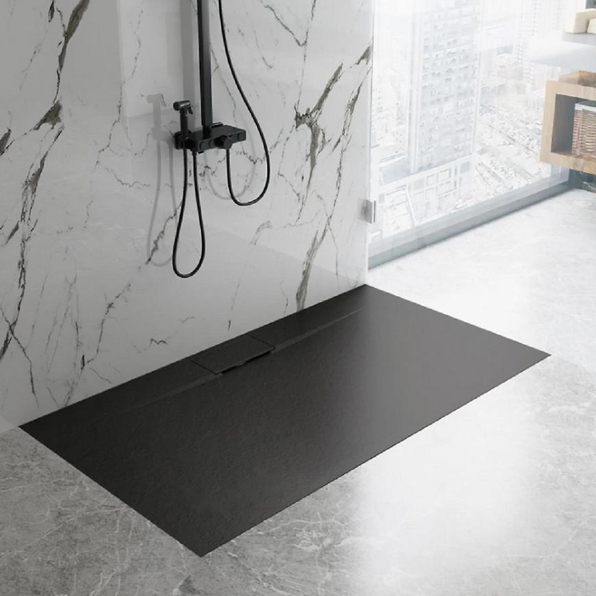 Brodzik prostokątny Rea Bazalt Long Black 120x80 cm to nowoczesny i ultracienki model o wysokości zaledwie 2,5 cm, idealny do eleganckich, minimalistycznych łazienek. Wykonany z trwałego kompozytu SMC, charakteryzuje się odpornością na uszkodzenia i łatwością w utrzymaniu czystości. Matowe, czarne wykończenie nadaje strefie prysznicowej luksusowy i nowoczesny charakter. Brodzik sprzedawany jest bez syfonu i nóżek, co pozwala na indywidualny dobór akcesoriów i montaż dopasowany do potrzeb użytkownika.
