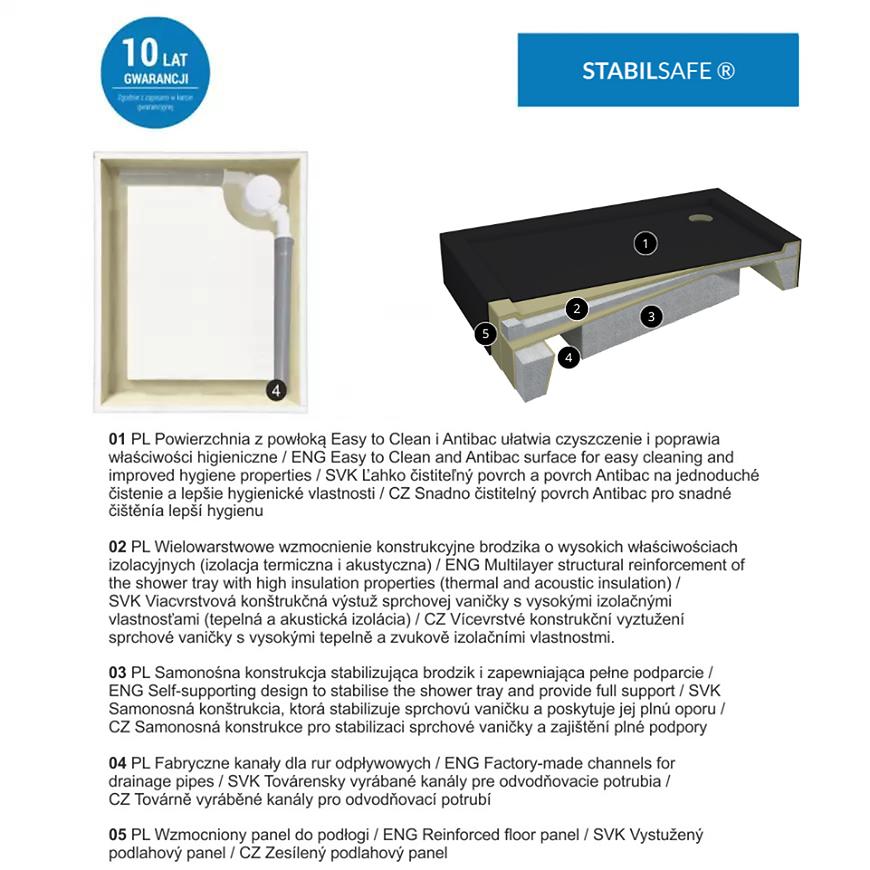 Brodzik prostokątny SCHEDPOL Black Mat Espera Plus AQM4638CMG o wymiarach 80x120 cm i wysokości 12 cm łączy elegancki, matowy czarny wygląd z praktycznym designem. Wykonany z trwałego akrylu z podbudową stabilizującą i powłoką antybakteryjną, gwarantuje higienę i komfort użytkowania. Niska wysokość i prostokątny kształt ułatwiają montaż, a solidna konstrukcja zapewnia długotrwałą trwałość i estetykę w nowoczesnej łazience.