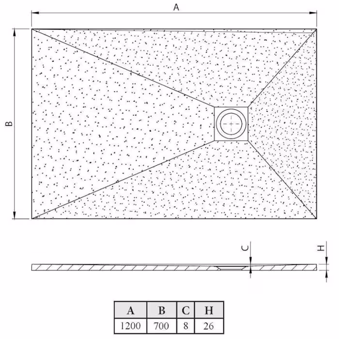 Brodzik wykonany z konglomeratu o szerokości 70 cm i długości 120 cm. Proponowany Syfon brodzikowy zero bez pokrywy.