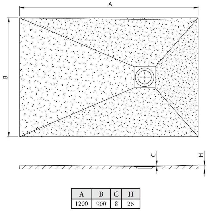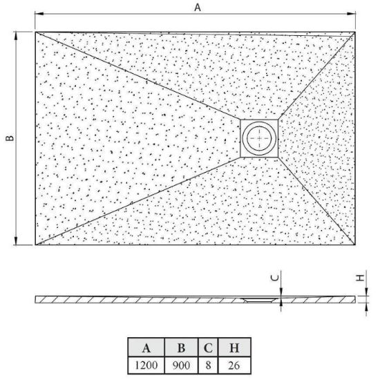 Brodzik wykonany z konglomeratu o szerokości 90 cm i długości 120 cm. Proponowany Syfon brodzikowy zero bez pokrywy.