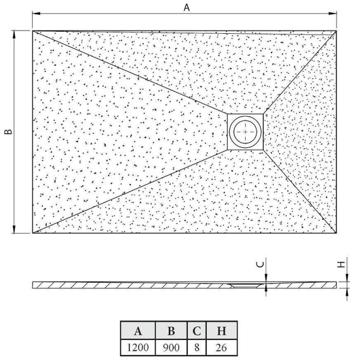 - Brodzik prostokątny Opal 120/90/2,6 szary