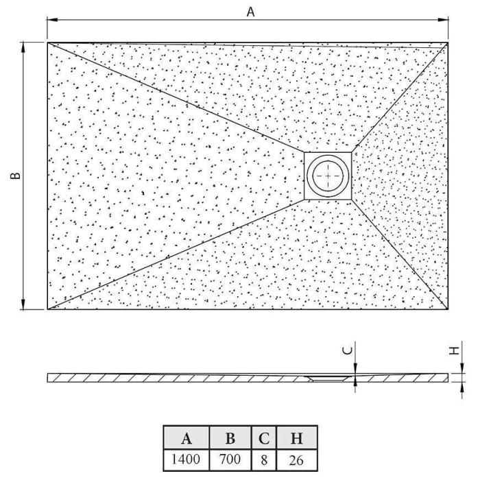 Brodzik wykonany z konglomeratu o szerokości 70 cm i długości 140 cm. Proponowany Syfon brodzikowy zero bez pokrywy.
