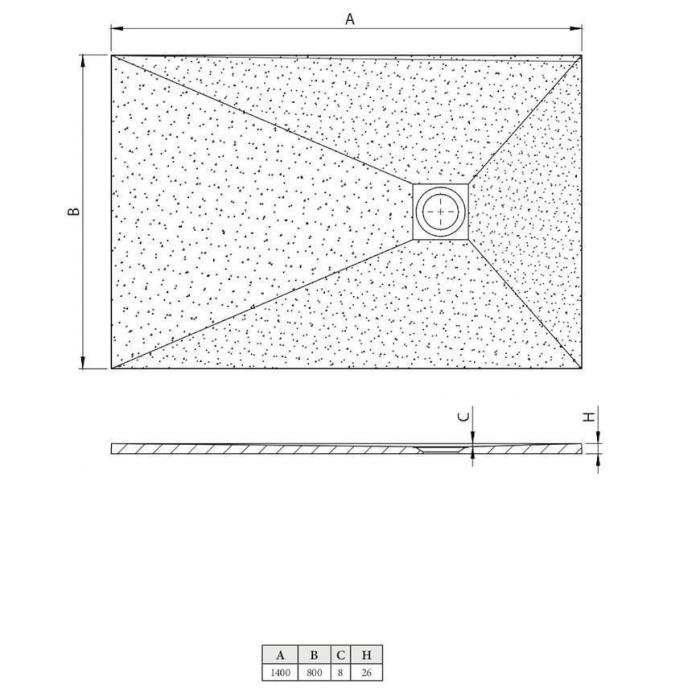 Brodzik wykonany z konglomeratu o szerokości 80 cm i długości 140 cm. Proponowany Syfon brodzikowy zero bez pokrywy