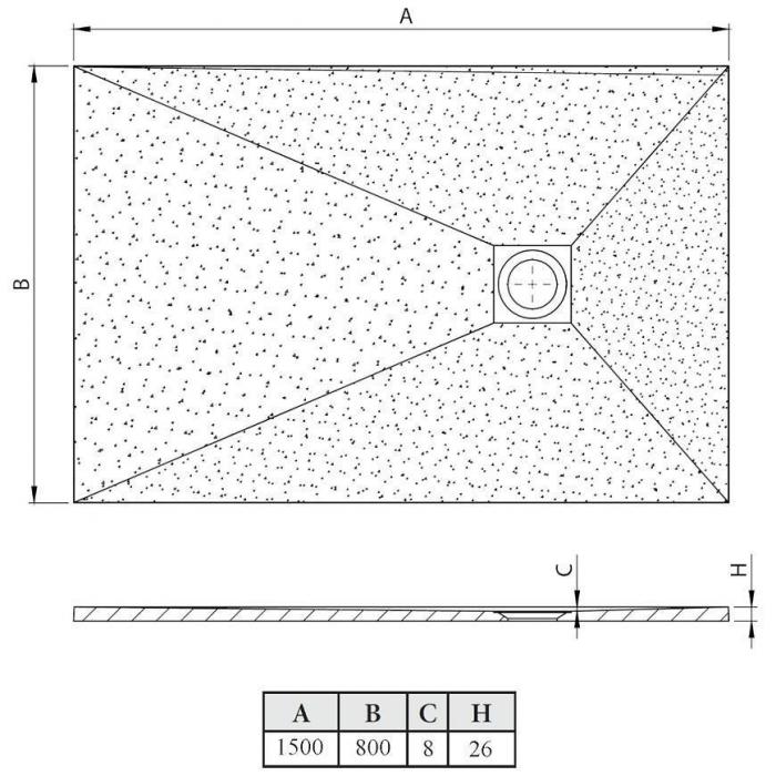 Brodzik wykonany z konglomeratu o szerokości 80 cm i długości 150 cm. Proponowany Syfon brodzikowy zero bez pokrywy.