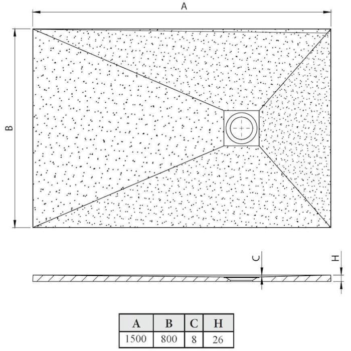 Brodzik wykonany z konglomeratu o szerokości 80 cm i długości 150 cm. Proponowany Syfon brodzikowy zero bez pokrywy.