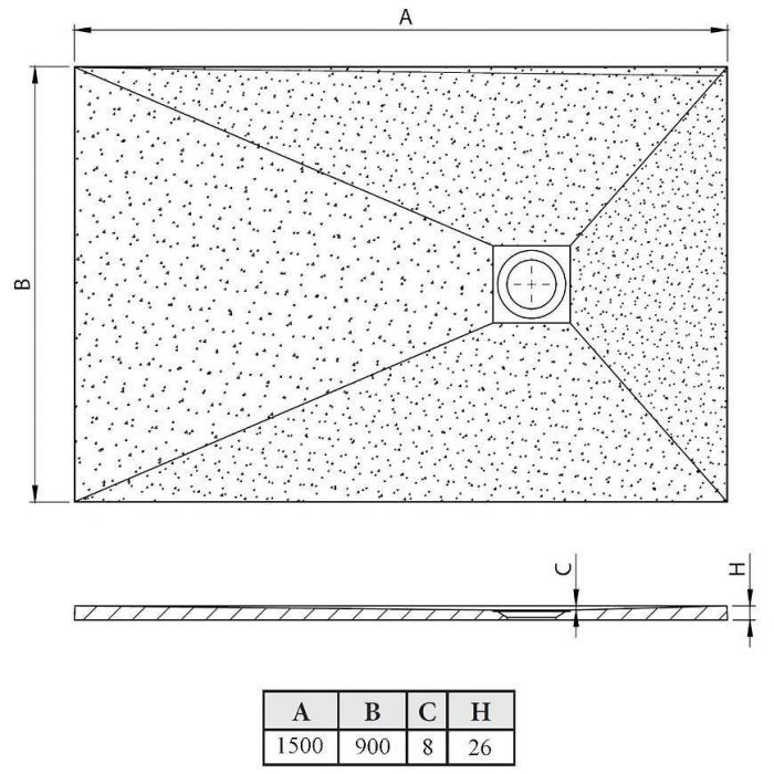 Brodzik wykonany z konglomeratu o szerokości 90 cm i długości 150 cm. Proponowany Syfon brodzikowy zero bez pokrywy.