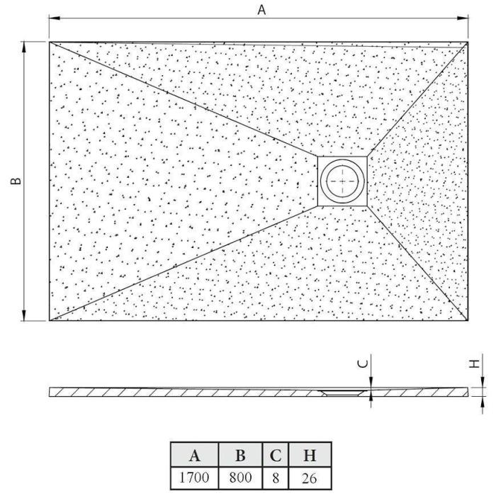Brodzik wykonany z konglomeratu o szerokości 80 cm i długości 170 cm. Proponowany Syfon brodzikowy zero bez pokrywy.