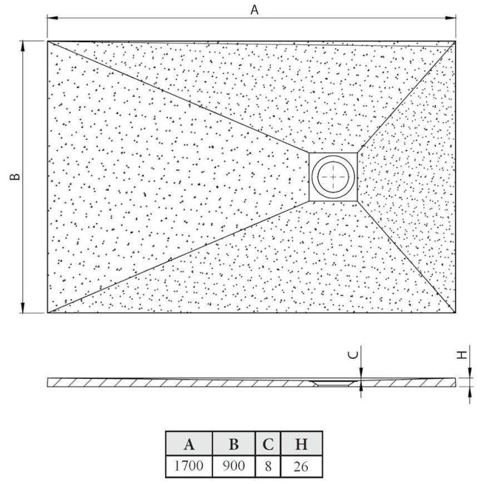 Brodzik wykonany z konglomeratu o szerokości 90 cm i długości 170 cm. Proponowany Syfon brodzikowy zero bez pokrywy.