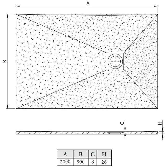 Brodzik wykonany z konglomeratu o szerokości 90 cm i długości 200 cm. Proponowany Syfon brodzikowy zero bez pokrywy.