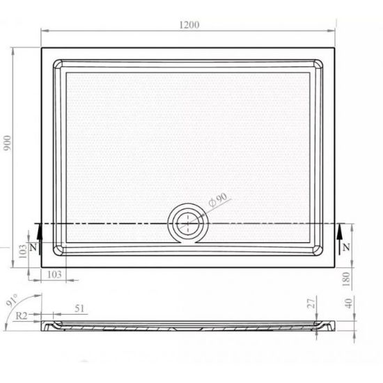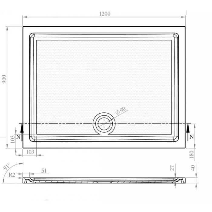 Brodzik prostokątny Tek 120x90x4