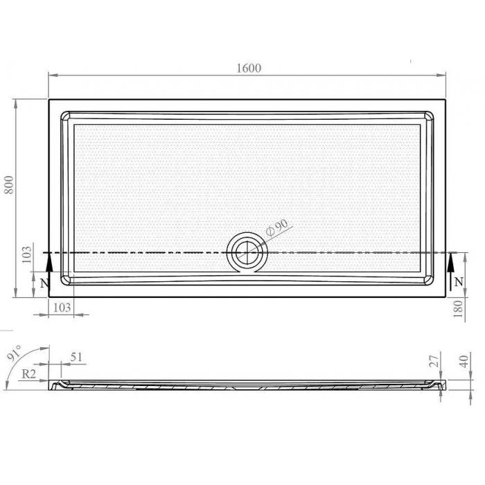 Brodzik prostokątny Tek 160x80x4